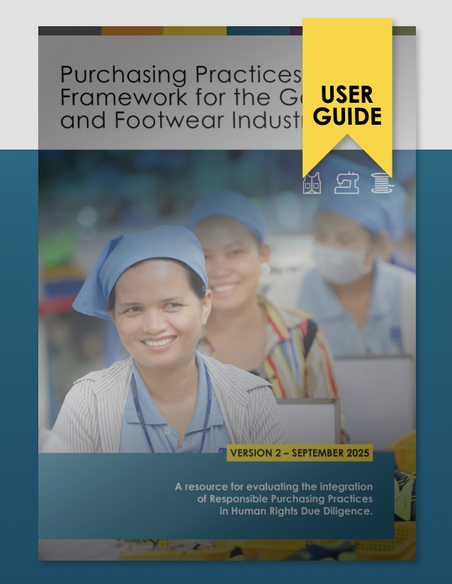 The Resource Hub complements the Purchasing Practices HRDD Framework and the Common Framework for Responsible Purchasing Practices by offering practical ideas and tools to help you engage with stakeholders, assess risk, and make improvements. While the Common Framework and this hub offer practical ideas and flexibility to adapt actions to your context, the HRDD Framework focuses on the core requirements companies should be held accountable for.